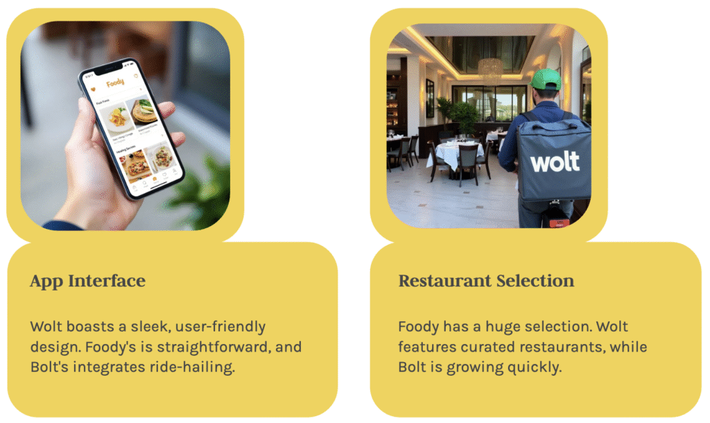 These differences highlight how each app serves a unique audience. While Wolt prioritizes speed and design, Foody focuses on variety, and Bolt emphasizes affordability and multi-service convenience. Users can weigh these factors based on their priorities to determine which app aligns best with their needs.