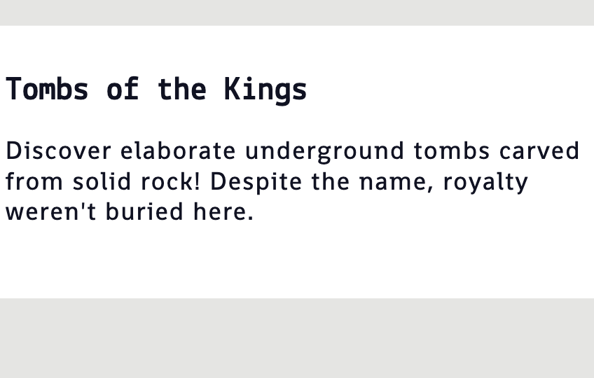 Carved into solid rock, these underground tombs showcase the sheer craftsmanship and determination of ancient builders. Walking through this site, you can almost feel the strength of a civilization that honored its leaders with such magnificence.