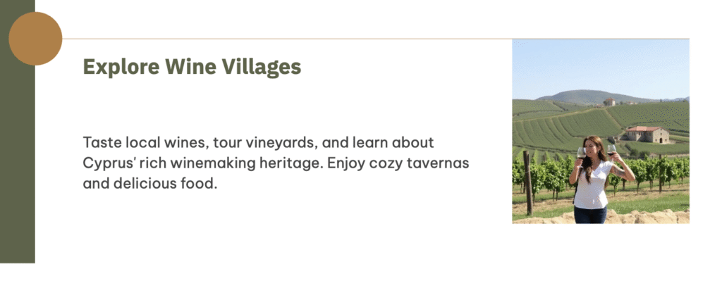 Many of these villages host small museums where you can learn about traditional Cypriot crafts, agriculture, and history.
